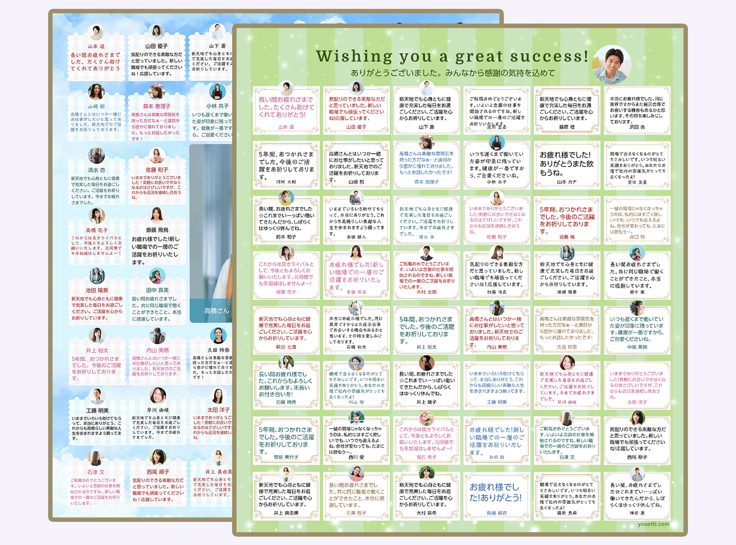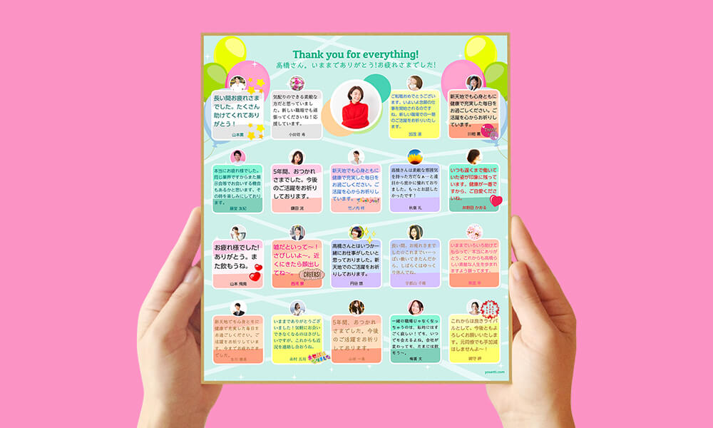 色紙のデザインによって1枚あたりにメッセージを書き込める最大人数は異なります。